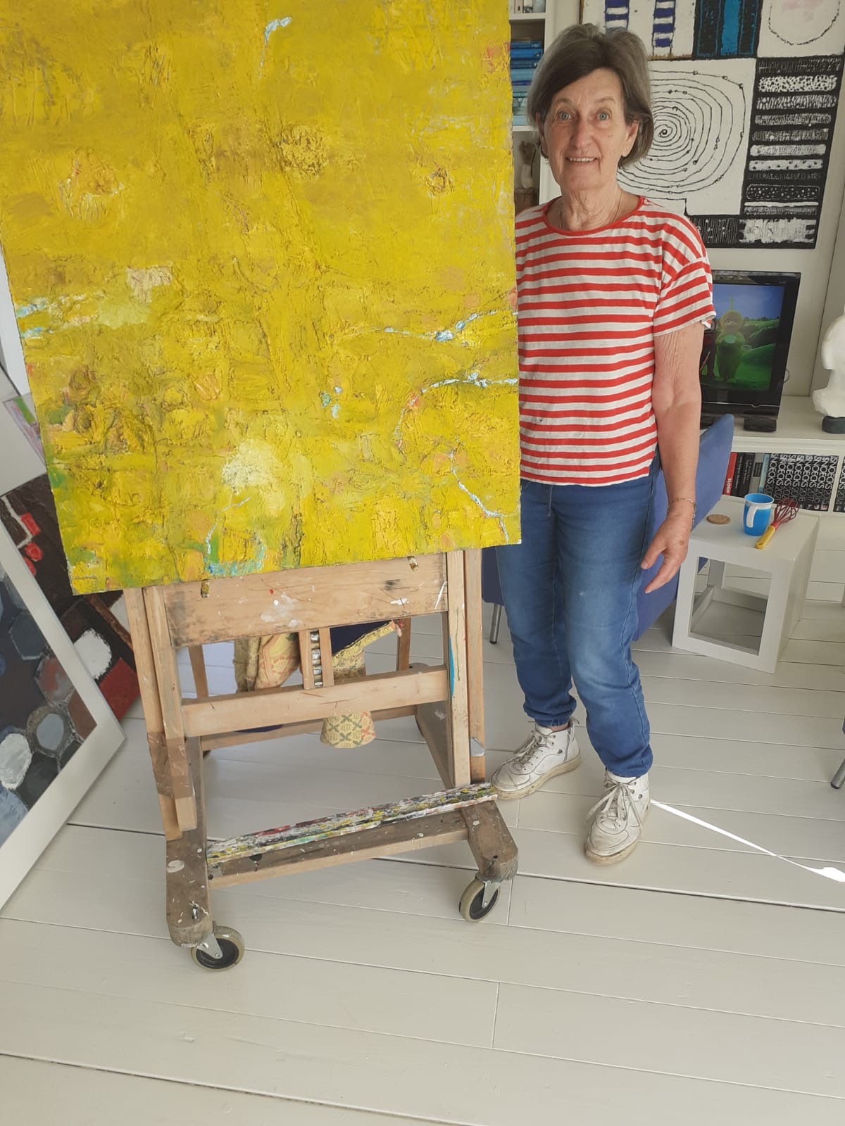Schilder en beeldhouwwerk De schilderijen zijn lyrisch abstract, eenvoudige vormen vertellen een verhaal. Als materiaal gebruik ik tegenwoordig acrylverf. De beelden zijn meestal abstracte vormen. Gehouwen uit Belgisch hardsteen, marmersoorten of albast.